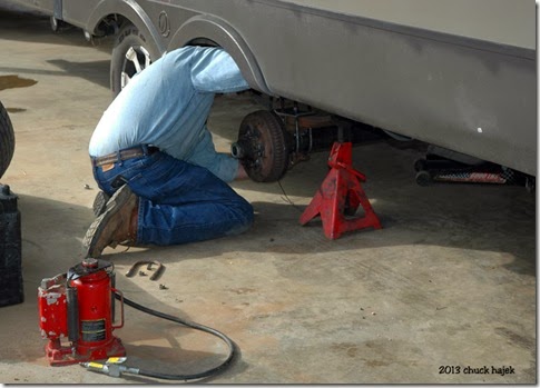 As I sit here typing away, Daryl is busy under the MotherShip re-attaching the axle!